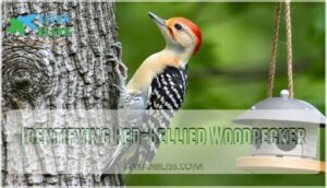 - You can identify each species by size, bill length, and color patterns—Downy Woodpeckers have short bills half their head length, while Hairy Woodpeckers have bills equal to their head length, and Red-bellied Woodpeckers don’t actually have red bellies despite their name.