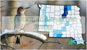 eBird data confirms their stable presence across Nebraska’s eastern regions. This woodpecker range stability makes identification easier since they don’t disappear seasonally like migrating species.