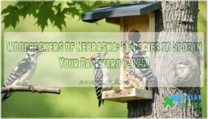 You’ll find six distinct woodpecker species calling Nebraska home, from the tiny Downy Woodpecker to the impressive Northern Flicker.