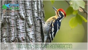 Delve into the world of the Yellow-bellied Sapsucker, a distinctive woodpecker species gracing the landscapes of Oklahoma. Recognizable by its striking plumage, this woodpecker boasts a black and white back, complemented by a distinctive red crown and a subtle yellowish belly.