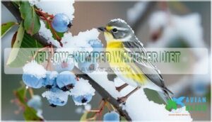 Yellow-rumped warblers switch from insect consumption during breeding season to berry preferences in winter.